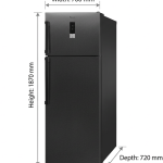Avec un niveau sonore de seulement 44 dB, ce réfrigérateur fonctionne de manière discrète, idéal pour les environnements domestiques. Ses dimensions (187 cm de hauteur, 70 cm de largeur et 72 cm de profondeur) lui permettent de s’adapter facilement à différents espaces de cuisine, tout en offrant une capacité optimale.